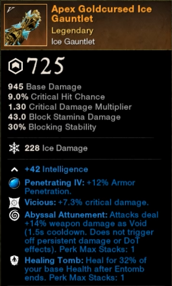 The Ice Gauntlet only really needs to have Healing Tomb on it, ideally you would also have CON as the attribute not INT like I do.