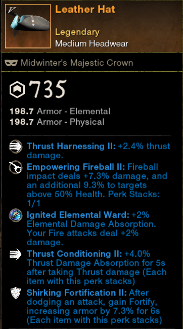 This build stacks both thrust and fire damage through the Thrust Harnessing charms and Ignited Runeglass. Both damage types sit at 63% empower fully buffed! This is the reason the build can hit so dam hard!