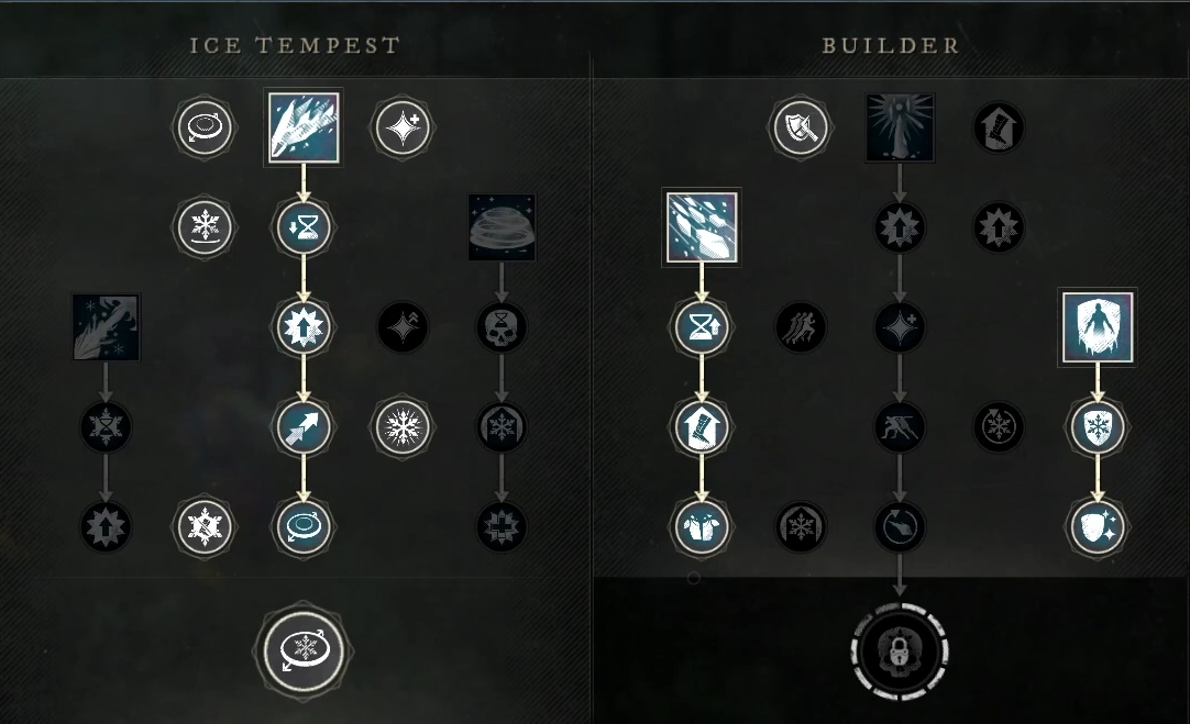 The Ice Gauntlet has Keen and Keen Speed to give this build a good movement bonus that is easy to proc at a distance or with the multi hit attack from Ice Spikes. Deadly Frost in a nice 3rd perk that will further reduce the cool down of Ice Shower when on the gauntlet. I would actually prefer to have Healing Tomb here for the additional healing it provides.